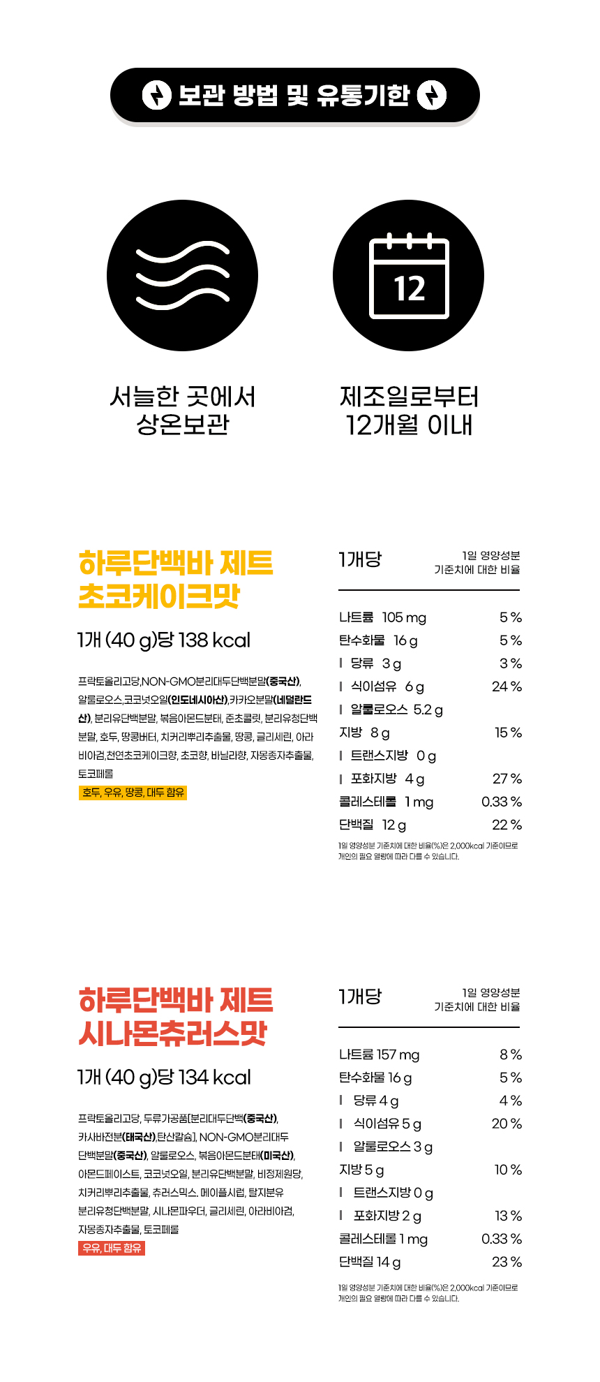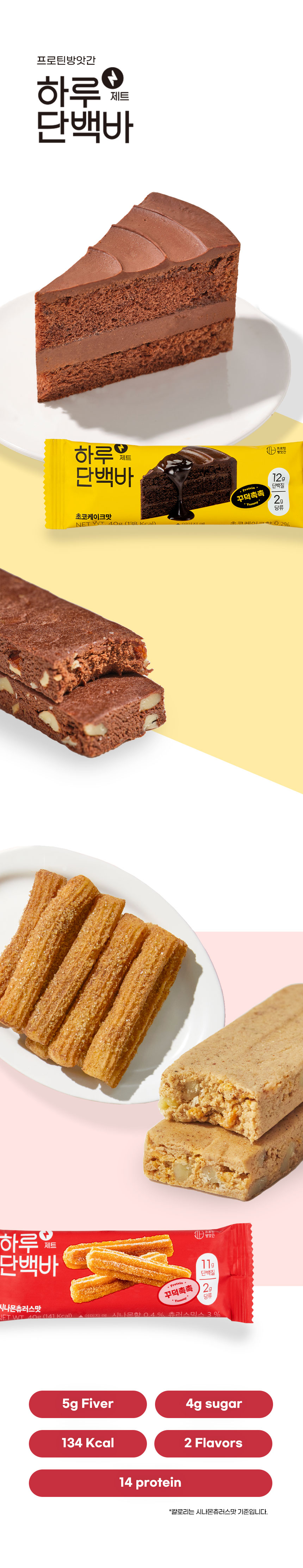 [하루단백바 제트] 꾸덕촉촉 저당 프로틴바 1박스 초코케이크&시나몬츄러스 기본영양성분