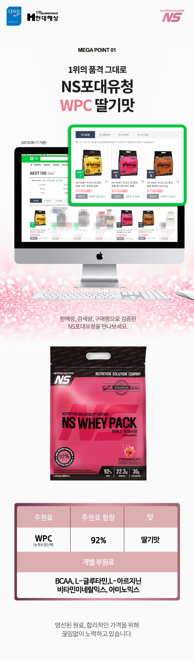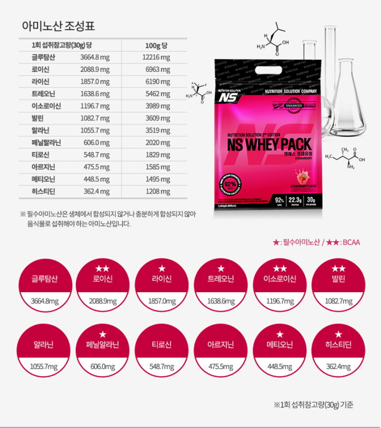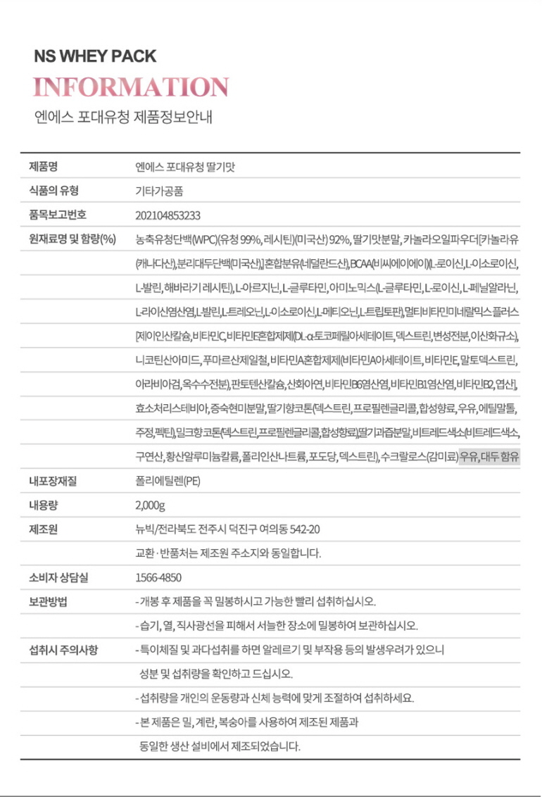 NS포대유청 WPC 딸기맛 2kg 기본영양성분