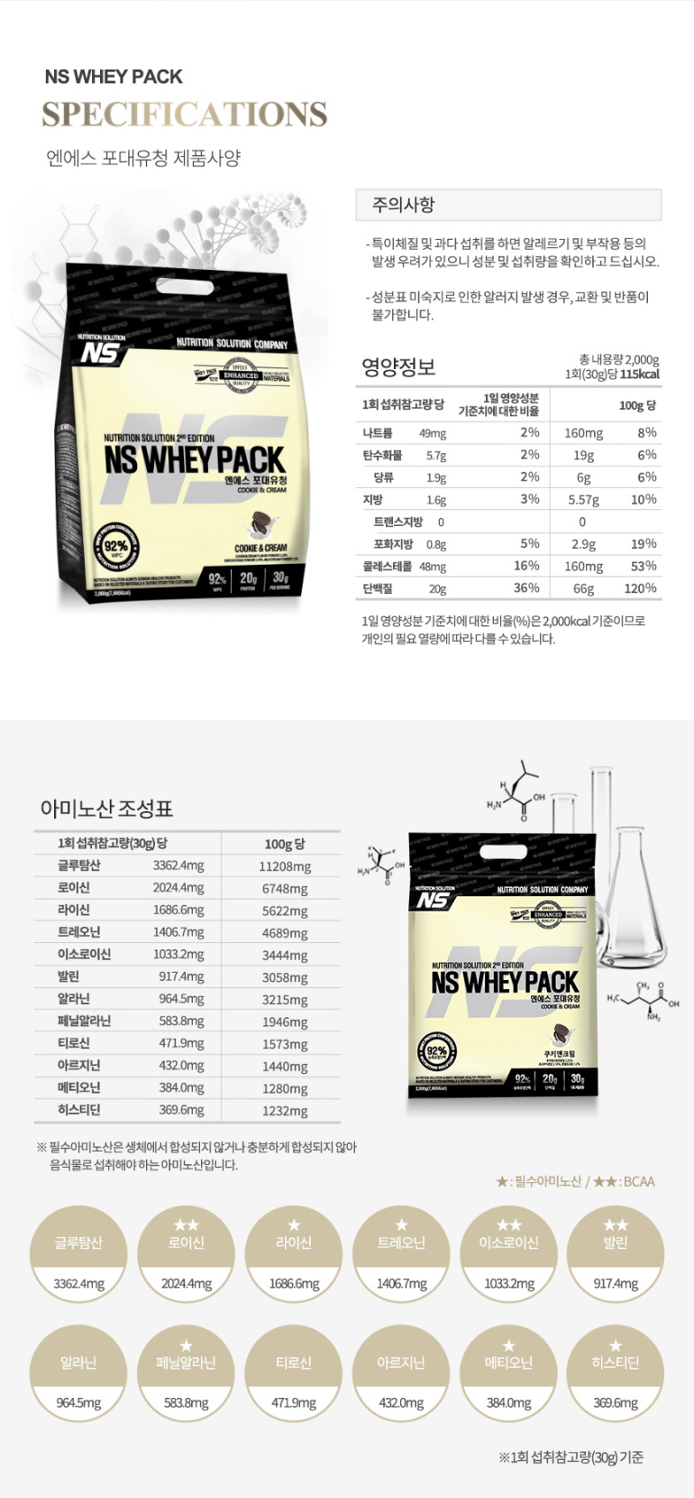 NS포대유청 WPC 쿠키앤크림 2kg 기본영양성분