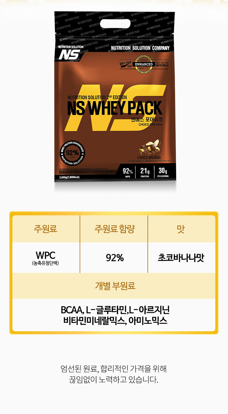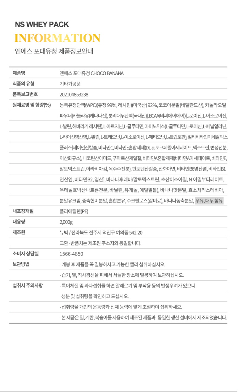 NS포대유청 WPC 초코바나나 2kg 기본영양성분