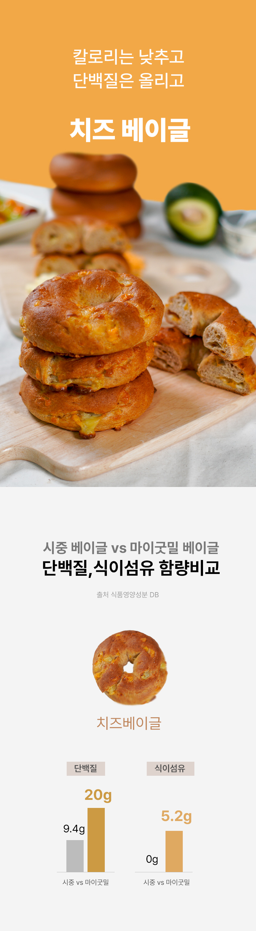마이굿밀 다이어트빵 저당 고단백 프로틴 통밀 치즈 베이글, 1개