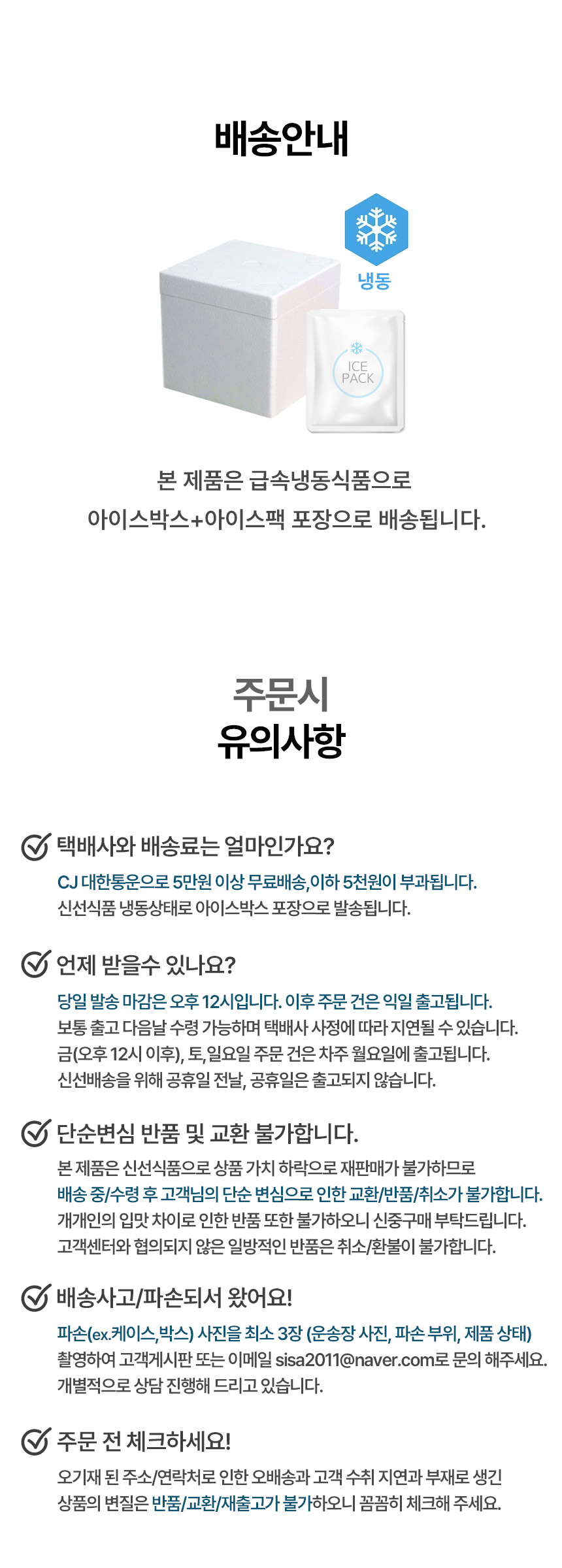 - 2권역(제주) 배송비 : 5,000원(기본+제주=10,000원)