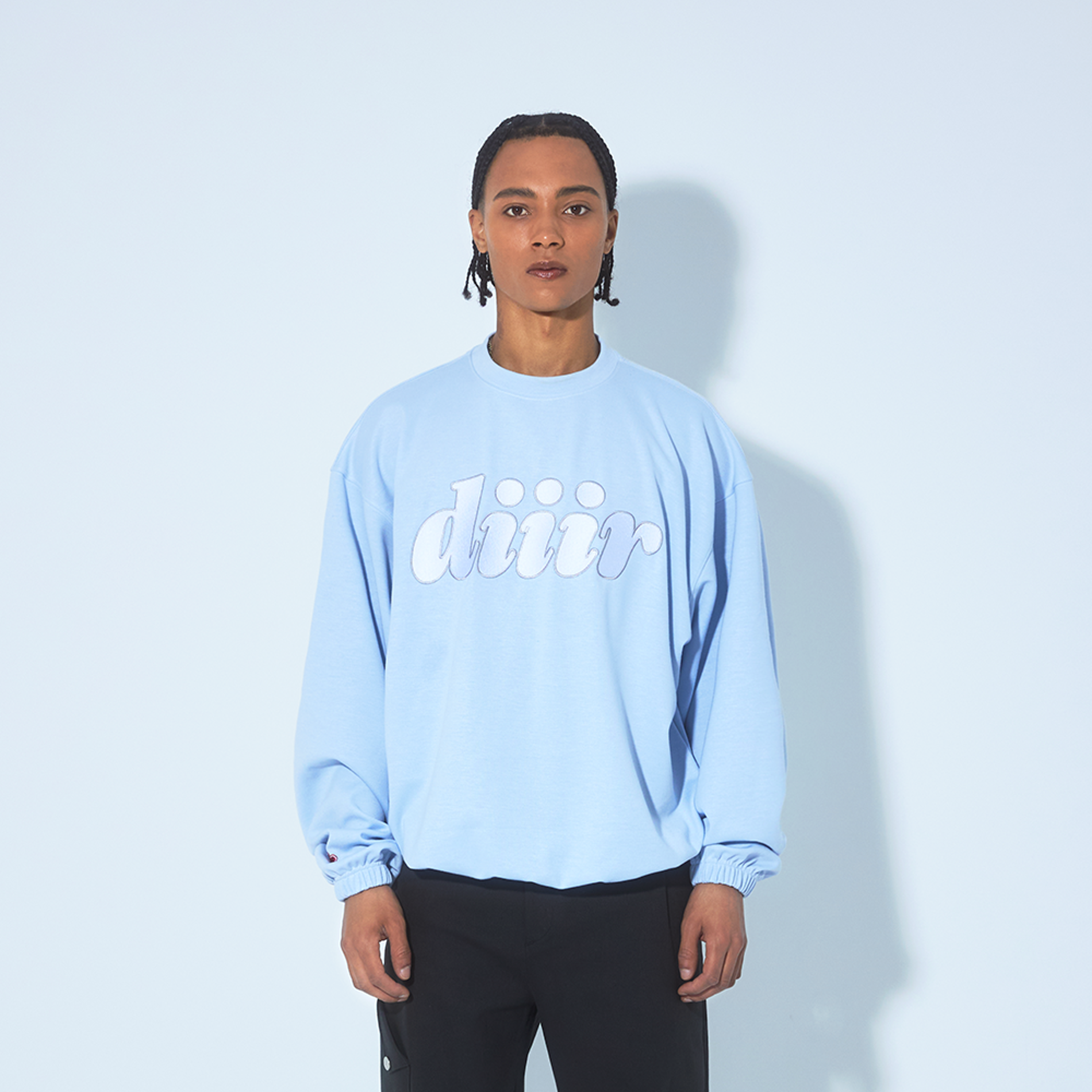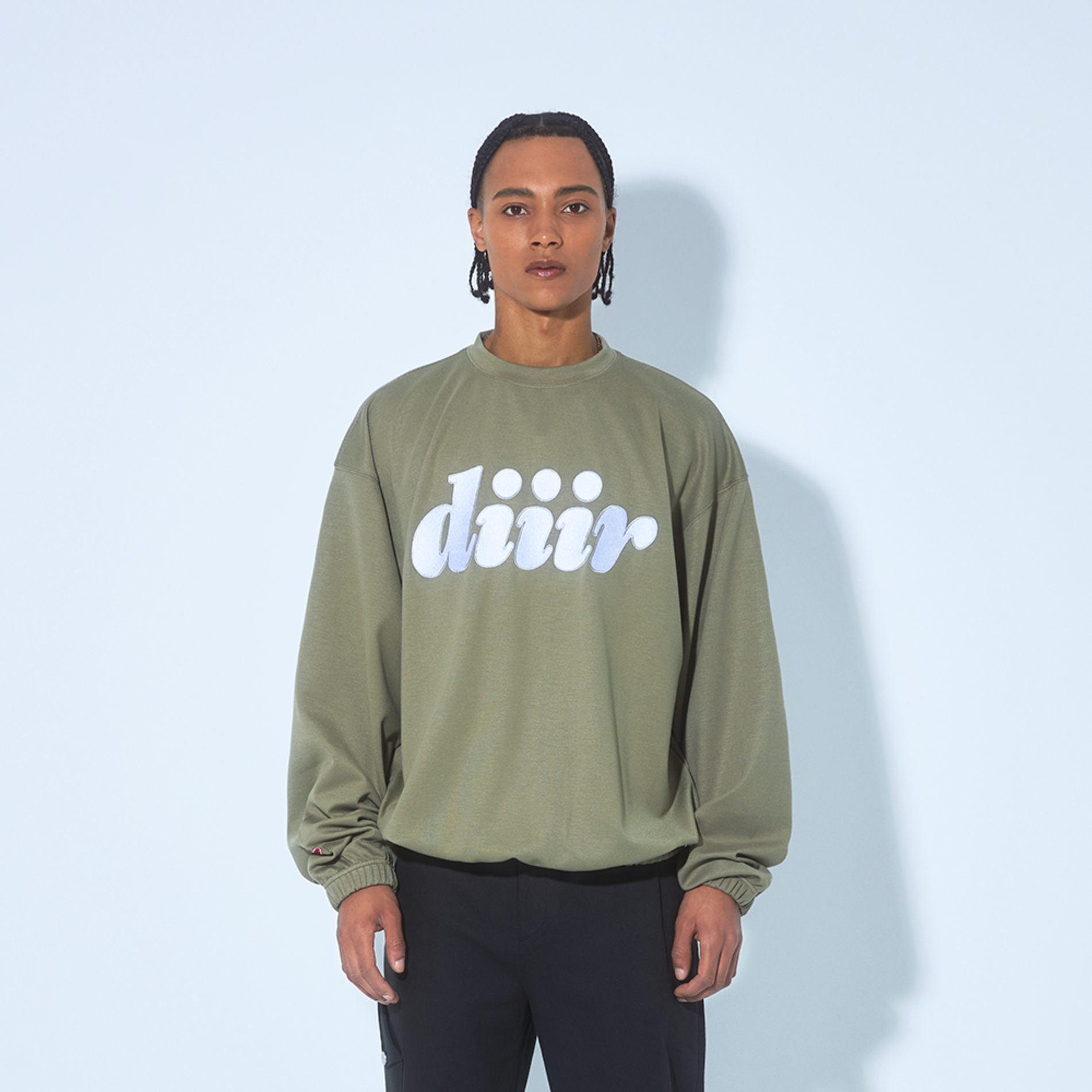 DIIIR의 2023 종이접기 컬렉션 스웨트셔츠로 편안함과 스타일을 동시에 즐기세요. 폴리에스터, 레이온, 스판덱스 혼방으로 착용감이 우수하며, 스카이블루와 올리브그린 컬러로 다양한 스타일링이 가능합니다.