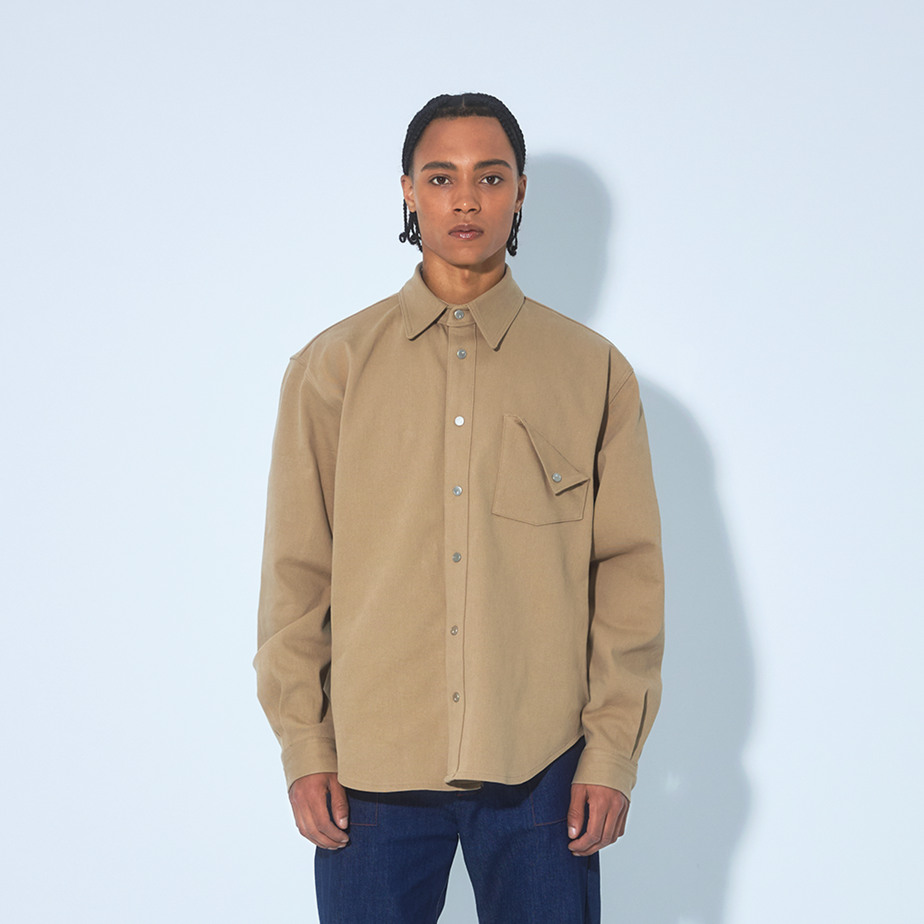 DIIIR의 스판 트윌 셔츠 자켓으로 편안함과 스타일을 동시에 잡으세요. 오버사이즈 핏과 베이지 컬러로 세련된 캐주얼 룩을 연출할 수 있습니다.